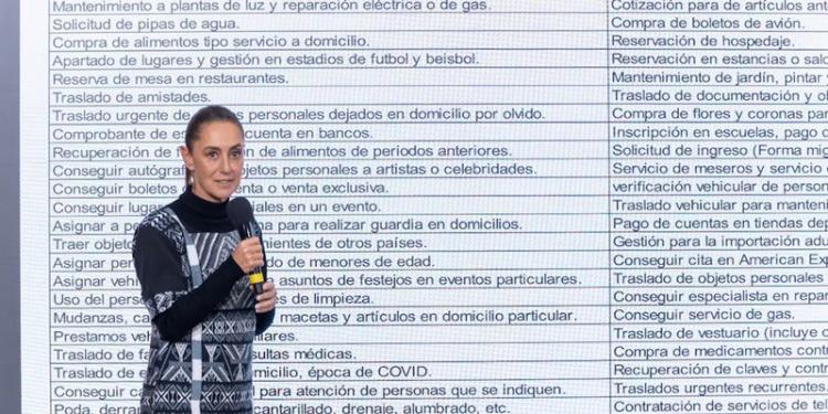 Además: poda, derrama y limpieza, alcantarillado, drenaje, alumbrado; gestión de boletos de cortesías; servicio de OCESA y Ticketmaster; monitoreo de paquetería en envíos realizados por empresas especializadas; trámites bancarios; apoyo hospitalario; recuperación de objetos; compra de regalos y boletos de avión; reservación de hospedaje; mantenimiento de jardín; adquisición de flores y coronas para fines funerarios; inscripción en escuelas, pago de colegiaturas y obtención de becas; solicitud de ingreso a México de extranjeros y servicio de meseros y servicio de valet parking.