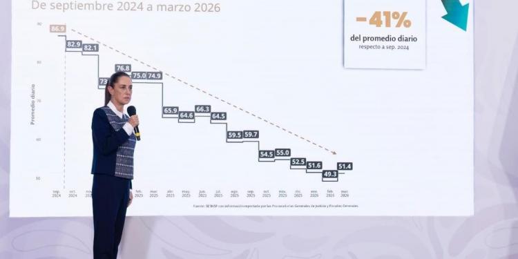 “En nuestro gobierno, con cifras preliminares de 2026, hemos reducido los homicidios dolosos del 2024, 91.7 al 2026 en 50.8 diarios. Seguimos trabajando, pero la estrategia está dando resultados”, puntualizóEl objetivo de la Escuela de Mando es formar a secretarios de Seguridad con honestidad, profesionalismo, humanismo y respeto por los derechos humanosEl promedio diario de homicidios dolosos disminuyó 41%, de septiembre de 2024 a marzo de 2026, lo que representa 35 homicidios menos diarios; colocando a marzo de este año como el más bajo desde el 2016 Del 1 de octubre de 2024 al 31 de marzo de 2026, se detuvo 49 mil 530 personas, se aseguraron 25 mil 700 armas de fuego, casi 500 toneladas de droga y se desmantelaron 2 mil 330 laboratorios clandestinos