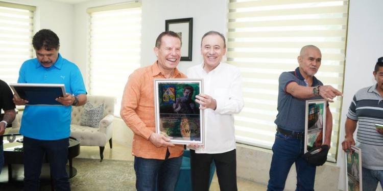 En un encuentro con los boxeadores sonorenses Hernán “Tyson” Márquez, Luis Ramón “Yori Boy” Campas, Julio César Borboa, José Luis Ramírez y la esposa de David Sánchez, Valeria Ruiz, el mandatario estatal expresó su reconocimiento a todos los deportistas por sus destacadas trayectorias en el ring, promoviendo una vida sana para las juventudes.